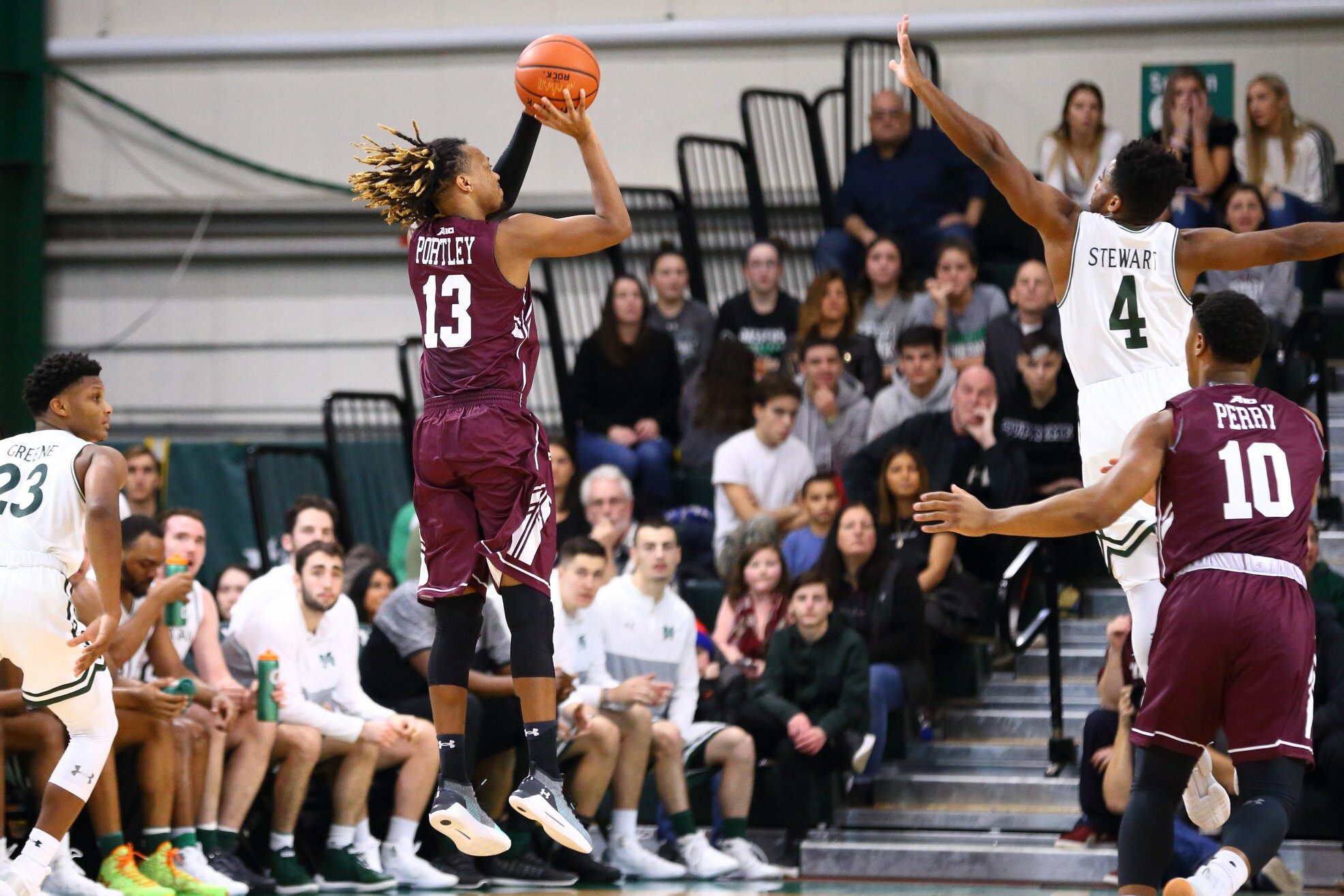 The game started out with a back-and-forth battle, until Fordham took control of the game behind redshirt junior guard Antwone Portley, as the Rams led 18-8 with 11:18 to go in the first half. However, Manhattan wasn’t that far behind, as the Jaspers kept feeding the ball inside to freshman forward Warren Williams throughout multiple stages of the game. It became a neck-and-neck battle throughout the half, then the Jaspers would go into halftime with a two-point lead, 27-25.