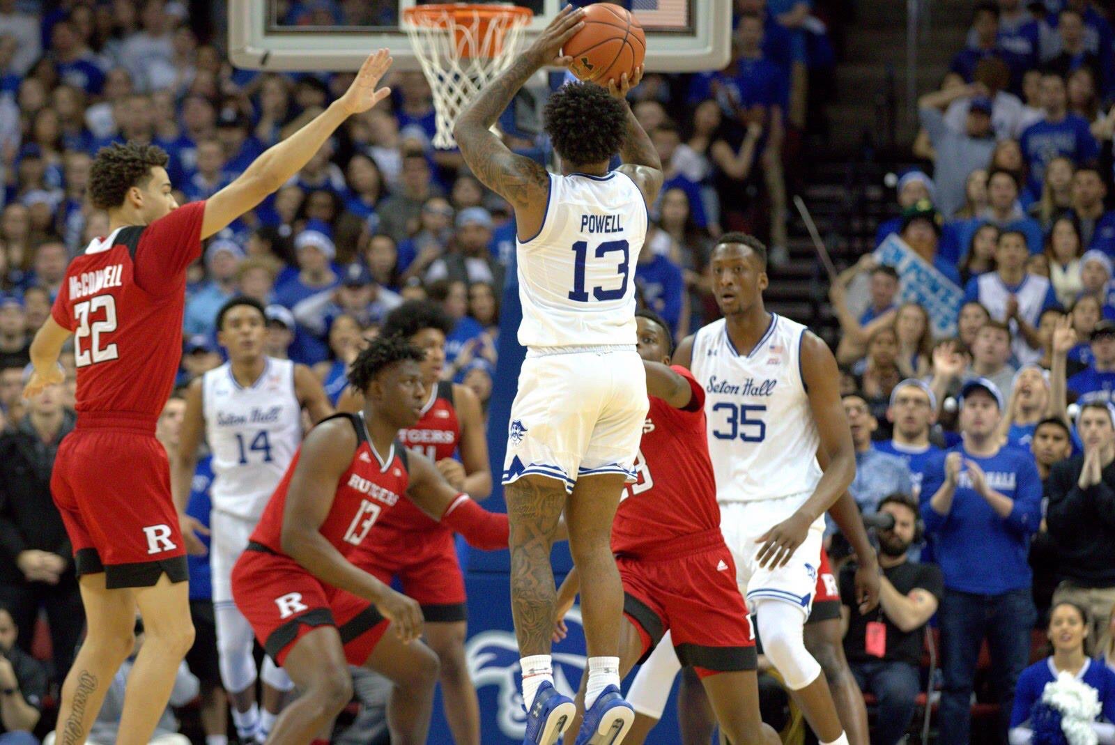 At the start of the second half, Rutgers cut the Pirates’ lead to seven points, 34-27, after a layup by freshman guard Montez Mathis with 19:33 to go. Then, Seton Hall came back with a 10-0 run, with five consecutive points from Powell, to extend its lead to 44-27 with 17 minutes left in regulation. But the Scarlet Knights wouldn’t go down easily, as they struck back for ten points to cut Pirates lead to 46-39 with 14:13 left to play, after a three by redshirt sophomore guard Peter Kiss.