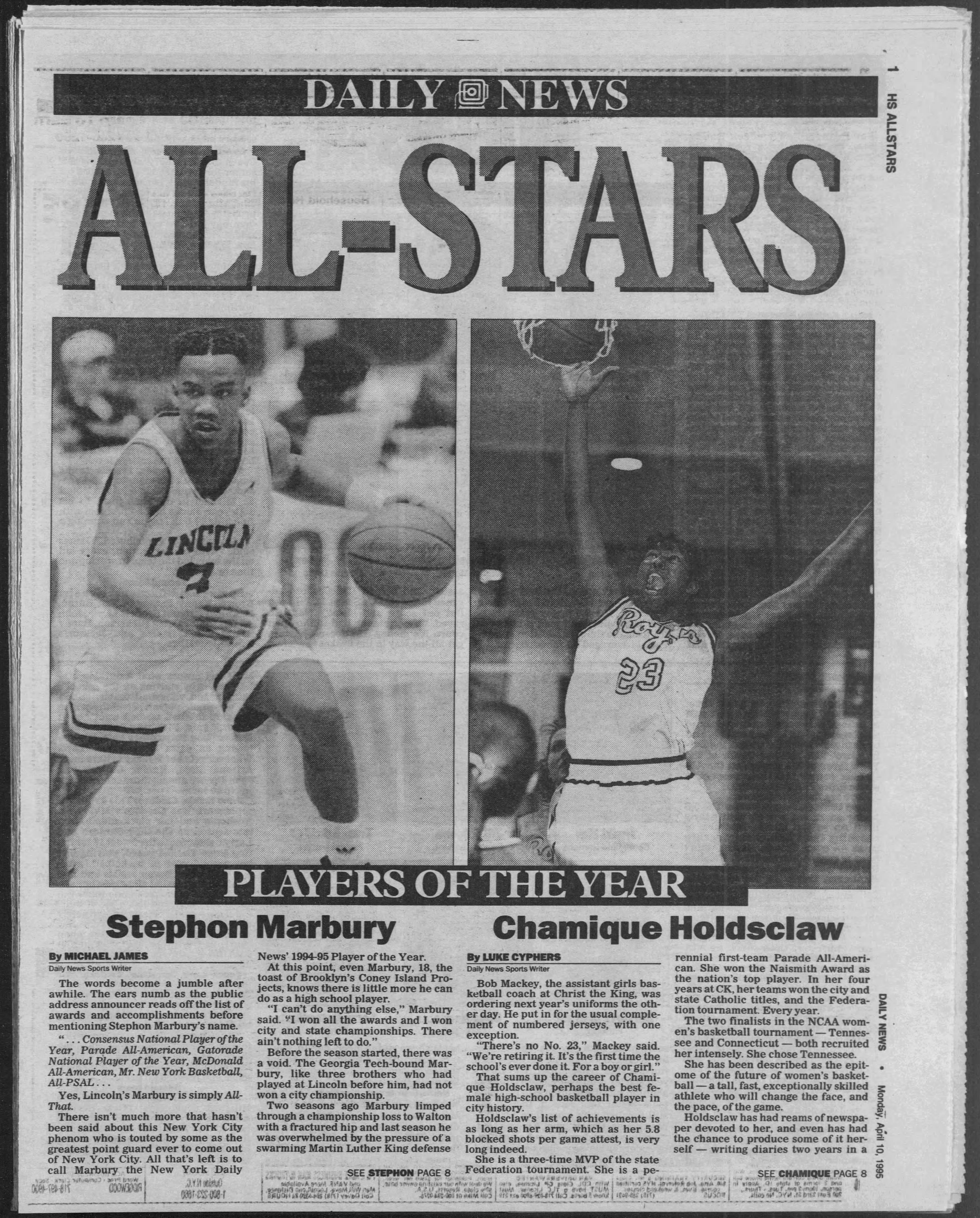 The fourth brother, Stephon, would be the chosen one, as he would ascend to bigger and better heights than his brother. He would win a city championship for the Railsplitters in his senior season in 1995, as well as win numerous honors and play in the McDonald’s All-American Game and the Magic Johnson Roundball Classic.